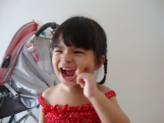 She also loves to play with her little brother, likes to wipe off his saliva when he drools, likes to sing to him, likes to fetch his hanky, towel or milk for him. A loving elder sister who have her own sudden outburst at times that she will just beat her lil bro. Cute...